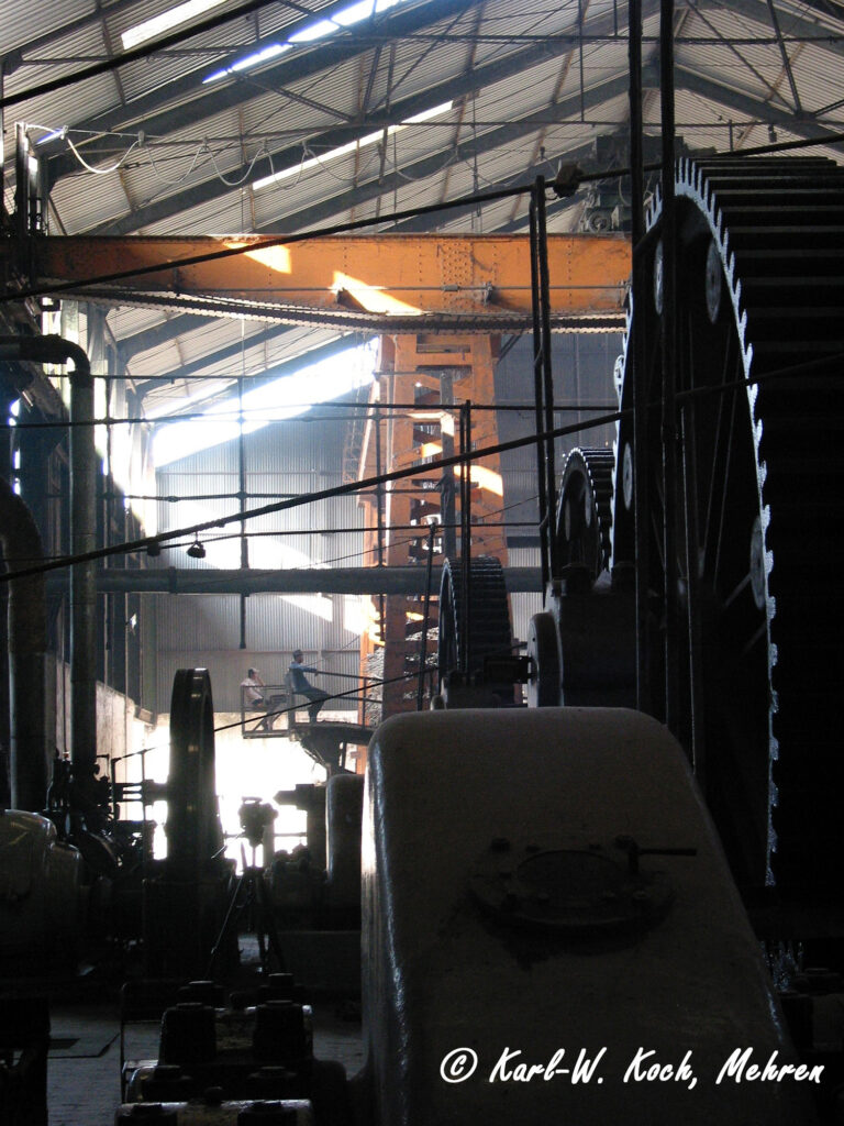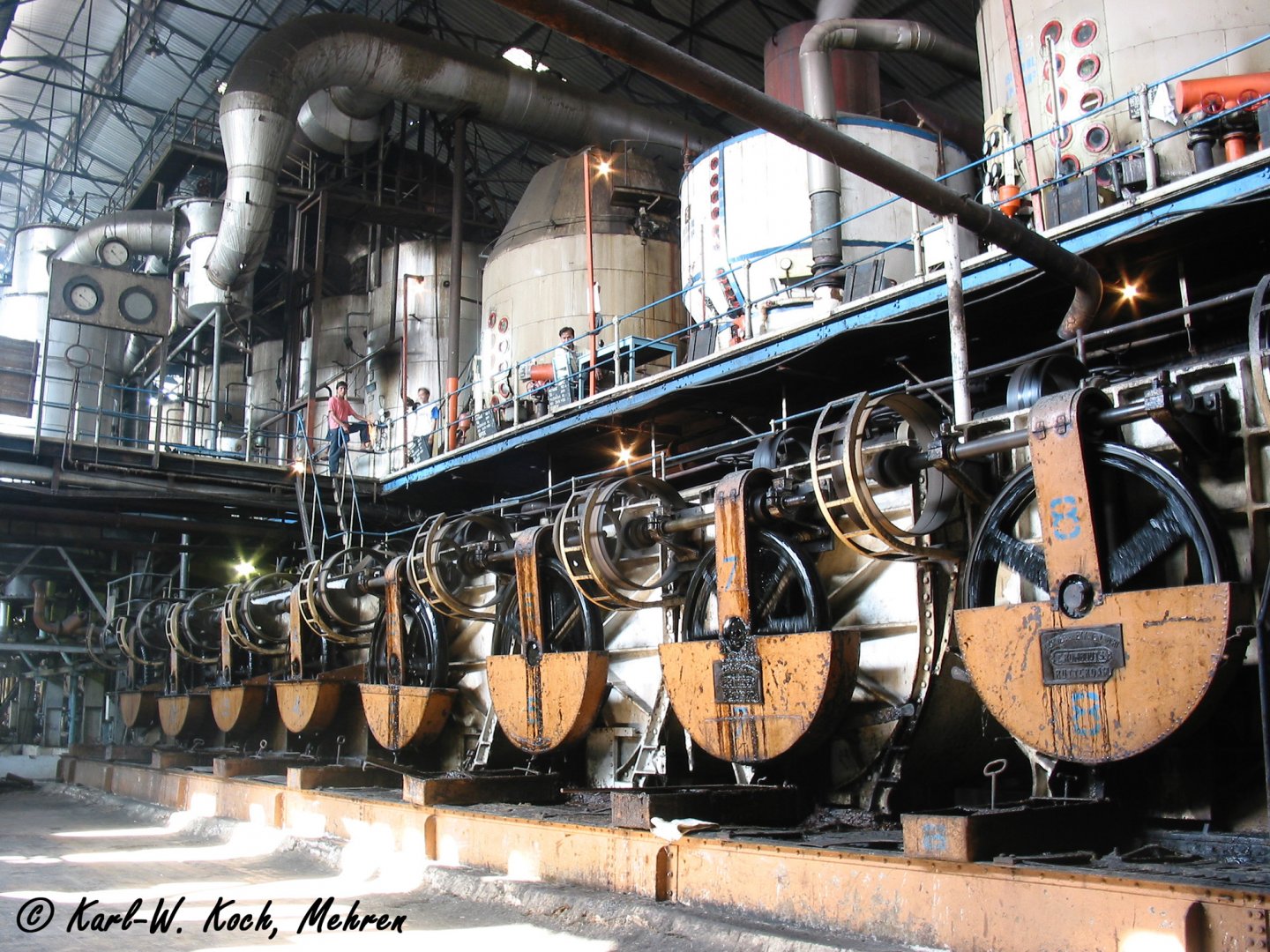 Mittlerweile vermutlich interessanter ist bei einigen Werken das Innere der Fabrikhallen, wobei die stationären Dampfmaschinen den Fuhrpark der Loks – soweit noch vorhanden – an Alter oft noch übertreffen. Die kräftigsten und imposantesten Maschinen stehen an den Pressen, aber auch an anderen Stellen wird Dampfkraft zum Pumpen, Schleudern oder Schütteln genutzt.